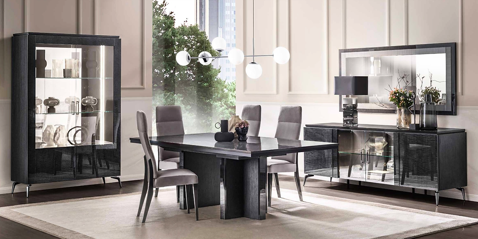 Essenza is the new collection of the Adora brand, which includes decoration elements for your living room, dining room and bedroom. This collection embodies contemporary elegance in small details that define the search for aesthetics, achieved to create each piece of furniture. The concept is inspired by the classic / contemporary dualism, and the contrasting textures of two beautiful finishes, embellished by elegant gold details. The contrast between the dark tones of the wenge wood and the glossy marble finish, with its typical bronze veins, is the leitmotif of this collection. The entire collection is enhanced by the satin gold elements used for the metal handles of the nightstands, the window frames, the dining tables and living room furniture. The precious details are characterized by the linear shape of the furniture profiles that marks the silhouette of the furniture. Bold details that contrast with the finishes, making each piece of furniture even more sober and important, enveloping its structure, and giving it shine. The purity of the decorations is combined with extreme attention to detail, in a daring and sophisticated synergy. that defines the essence of furniture. A unique style that shows great aesthetic potential, while ensuring functionality and elegance. Essenza is an expression of elegance, value and functionality.